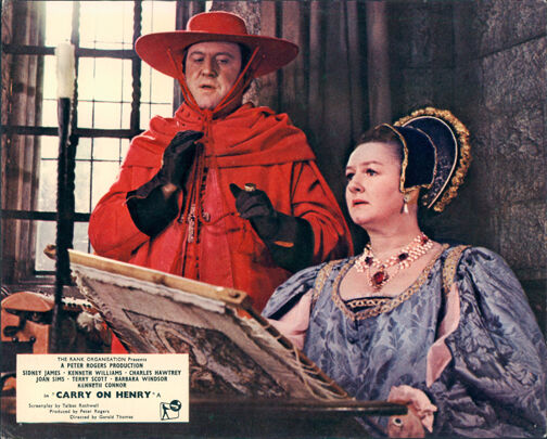 Next Marie of France transforms into the character of Catherine of Aragon with Henry becoming bored with her just as a new, young lady appears at court - Bettina of Bristol [obviously], played by Barbara Windsor [equally obviously]. Young Bettina displays her assets to get Henry's attention but refuses his advances until they get married - involving Henry in increasingly surreal efforts to divorce Marie.