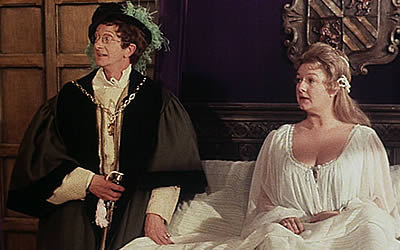 In fact the storyline is very loosely - very loosely - woven around some incidents in Henry's life. We kick off with the execution of an unnamed queen [Pasty Rolands] and then lurch into marriage with Anne of Cleves - although here the character of an unwanted wife is not Anne from Germany but Marie from France [Joan Sims]. Her habit of chewing raw garlic puts off the fastidious Henry who tries to avoid consumating the marriage - although the interference of Marie's cousin, King Francis of France complicates the issue. Henry meanwhile is chasing any available busty young lady, with assorted comic slapstick results.