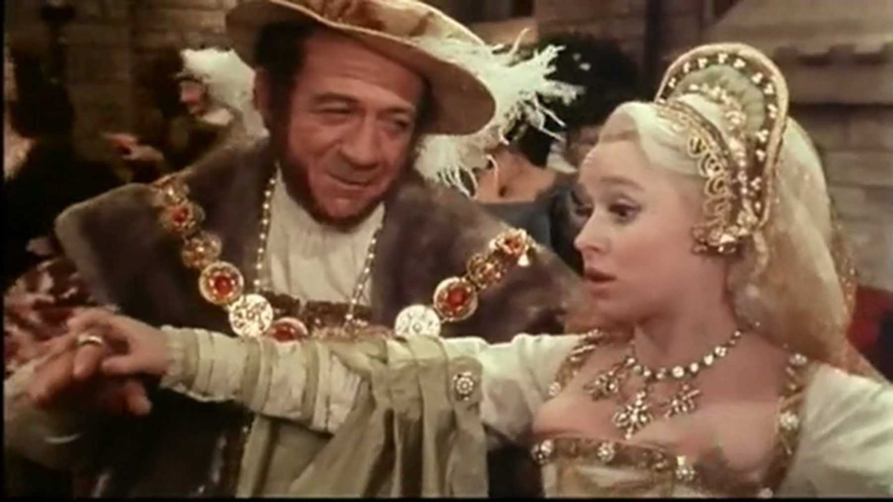 Eventually Anne of Cleves persuades Henry to marry the matronly Catherine Parr [Everly Gregg] who mothers him as old age sneaks up on the aging monarch.