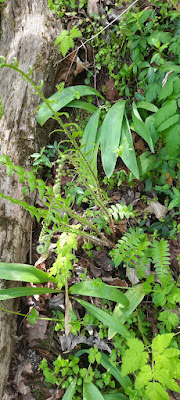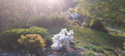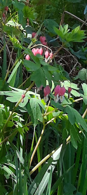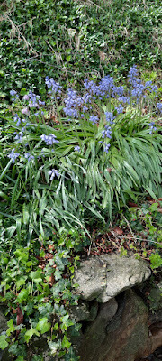 I went to check on the bluebells behind the house. (I have visions of a bluebell wood, such as we saw in England but it's not there yet.)