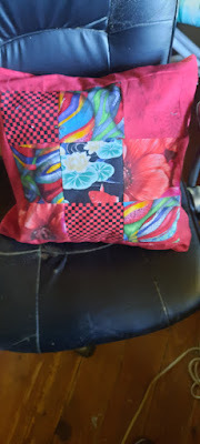 Like these 9 large squares--leftover from my niece Amelia's wedding quilt. Well, hell, thought I. I'll use them to make a quick pillow cover for that pillow form that's taking up room on my cutting table.