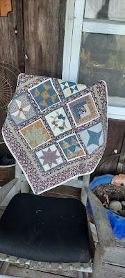 All but one block were quilted and the binding was on, but back then I'd begun an ambitious scheme of lots of quilting in the borders. Now, older and wiser, I thought about it and decided it wasn't needed--the three layers were already stable with the quilting in the blocks. So I picked out the one line I'd begun (20 years ago,) finished the unquilted block, and pronounced it done. Now I just have to figure out what to do with it.