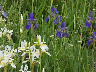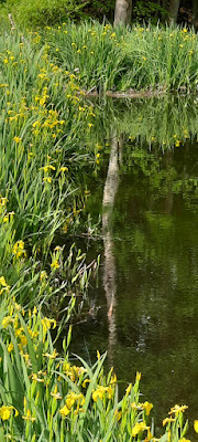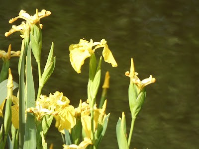 Many years ago, before the property next door had anyone living on it, I pulled up a couple of yellow flags growing in a boggy spot just past our fence line and transplanted them to our pond. They have done well.