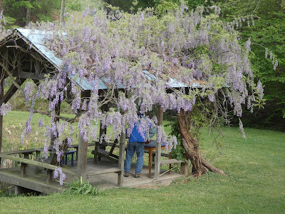 Along with the wisteria, the yellow flags (irises) are putting on a show.