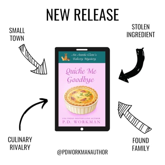 Stand-alone Friendly. All Auntie Clem’s Bakery books, including Quiche Me Goodbye are written so new readers can jump in at any book.Recent Reads. Quiche Me Goodbye follows Chocolate Eclairvoyant (Book #26) and Mock Apple Alibi (Book #25) Begin with Gluten-Free Murder (Book #1). Sign up for the mailing list at PDWorkman.com to receive Your First Bite — a Cozy Mystery Starter Pack (first ebook, audiobook, printable recipe cards, and more).