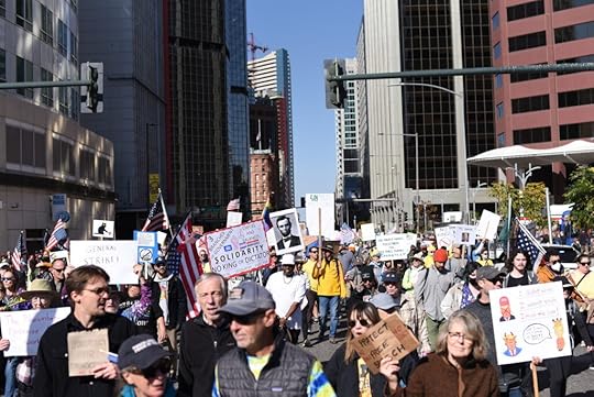 People walk down Broadway during the “No Kings” protest on Oct. 18, 2025. Michael Braithwaite, The Denver Gazette