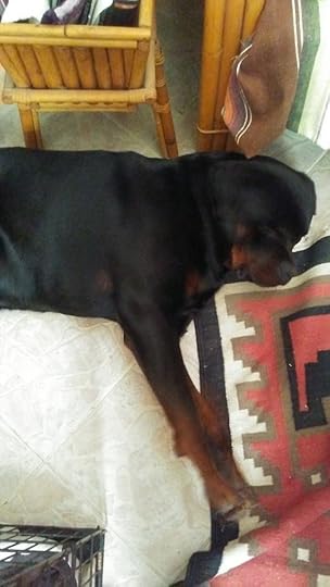 It’s been six weeks now, so I think it’s time to introduce my new writing partner hard at work!
