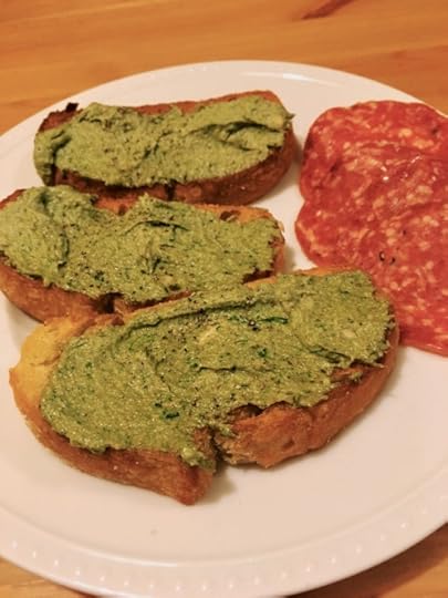 Dice the ramps, keeping the white and green parts separate. Heat the butter in a heavy skillet on medium until lightly browned (I actually used real butter because cooked butter doesn’t bother me, I don’t understand bodies). Add the whites of the ramps and cook 1-2 mins until tender. Then add the leaves, cooking until lightly charred. Place on a paper towel to soak up excess butter (or not).