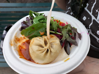 We got a couple of vegan momos, a kind of dumpling from a stall called something like Mama Momos.