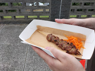 Jon got a beef skewer from Hanoi Street Food.