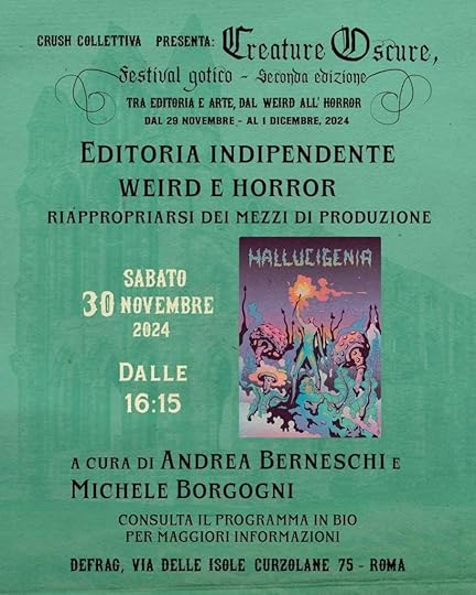 Questo sabato 30 Novembre io e Michele Borgogni saremo a Roma, ospiti dell’evento Creature Oscure: Festival Gotico – tra editoria e arte, dal weird all’horror. Terremo un panel dal poco ambizioso titolo “Riappropriarsi dei mezzi di produzione“, parleremo di editoria indipendente e in particolare di Hallucigenia, quindi se volete farvi autografare la vostra copia vi aspettiamo alle 16.15!