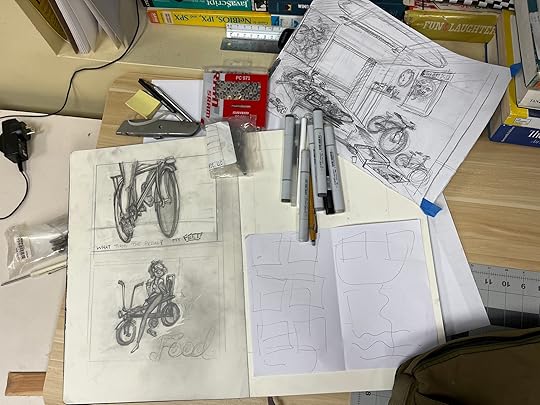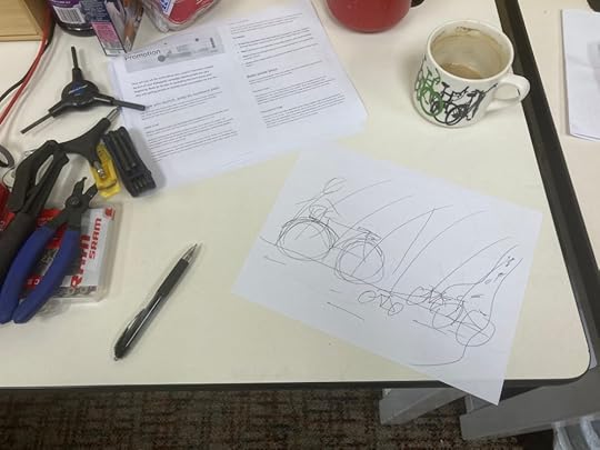 Photo from today’s weekly production meeting for The Pedal Turns the Crank. I love Khai’s rough sketches, but the major conceptual breakthrough? That I’ve been banging my head against for months (for years, if you’re counting since I first had the idea that this could be a picture book)?
