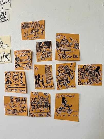 This little call-and-response chant was a game I made up for my bike-loving kids. It became a family tradition on our frequent bike outings, and now it’s becoming a children’s picture book, featuring bikes and families of all kinds coming from all kinds of places to meet up for a big ride together.