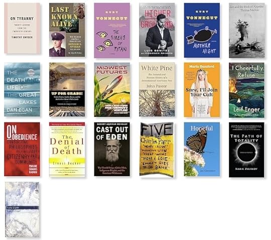I didn’t read 24 books this year. I made it through 19, but I got bogged down on some books about conservation, since I treat them like school books. I’m dog-earing pages and making notes. They tend to go slower than novels. But then again, I’ve only met this goal once (last year) in the past 15 years. So, I’ll remind myself what Stephen King says, “If you want to be a writer, you must do two things above all others: read a lot and write a lot. There’s no way around these two things that I’m aware of, no shortcut.”