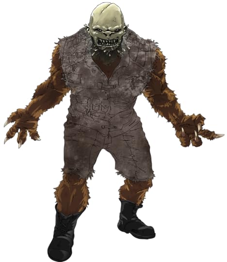 "They growled and snarled dauntingly, baring their canine-like teeth as drool dangled and flapped all around from the corners of their mouths. They were easily twice my height with ominously oversized, hairy, human-shaped bodies. Instead of hands, they had paws, each with four thick, yet surprisingly nimble digits, all with long, razor-sharp nails jutting out like ready-made daggers. Their barrel-chested physiques with grotesquely broad shoulders and cannon-sized arms were bigger and more muscular than anything I’d ever seen. Their strong, foreboding faces, with flat mouths and pushed-in noses that sat higher than their pitch-black recessed eyes vaguely reminded me of a bulldog. Unlike a bulldog, their heads were hairless with taut, dark gray skin over chiseled muscle and bone. I couldn’t tell whether their dark-brown skin was shiny or if they were wet, or maybe sweating. While they looked like animals, each one wore a black, military-style uniform with the sleeves torn off, undersized pants with frayed bottoms that stopped mid-shin, and ratty black army-style boots. As barbaric as these things appeared at first glance, they were definitely more than just wild beasts."