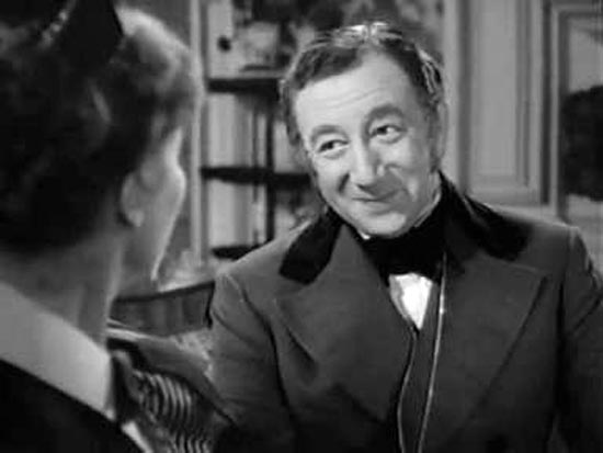 In the 1940 version starring Lawrence Olivier as Darcy, Mr. Collins is played by Melville Cooper. Cooper takes on the role at the age of 44, playing a tall, bombastic, attention seeking Collins. Cooper wore stage makeup during filming that was intentionally designed to make him look older than his 44 years. Now, one should never expect or demand precise casting in movies. Casting directors have to look for talent, availability, presence, a whole list of qualities, and sometimes those qualities aren't found in someone who fits the textual descriptions in the novel.That being said, it stretched credulity to cast a 44 year old actor to play a character that Austen describes as "a young man of five and twenty", who has only just been ordained a minister six months prior.