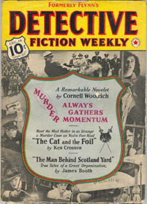 A guy tries to rob his miserly, corrupt former employer to recoup some lost wages he was cheated out of. Things go wrong. And then they get worse. That’s the plot of “Murder Always Gathers Momentum” from the December 14, 1940 issue of DETECTIVE FICTION WEEKLY. Once again, this tale is pure headlong suspense, barreling along to a twist ending, and yes, Woolrich got me again. It’s a very effective gut punch.