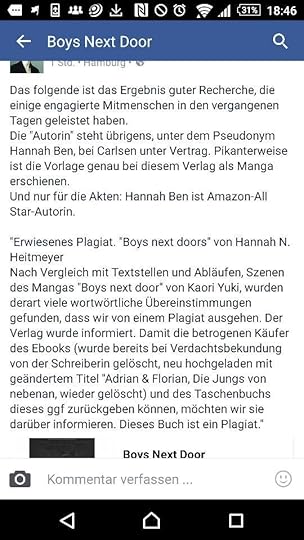 Ich sehe, wie cool die Promoaktionen meiner Kollegen sind, wie schnell sie viele, viele Interaktionen zu ihren Posts bekommen, wie toll ihre Lesungen sind, wie glücklich sie bei einem Verlag oder eben als freier Autor sind, wie schnell sie viele - und noch dazu gute - Rezensionen bekommen, wie sie schreiben, was sie wollen, oder schreiben, was die Leser wollen - oder im Idealfall wie die Leser wollen was sie schreiben wollen. Wie sie ständig etwas zu bejubeln und zu feiern haben, während ich mich in meinem dunklen Kämmerlein mit der nächste Sinnkrise herumwälze.Und dann fühle ich mich ... minderwertig.