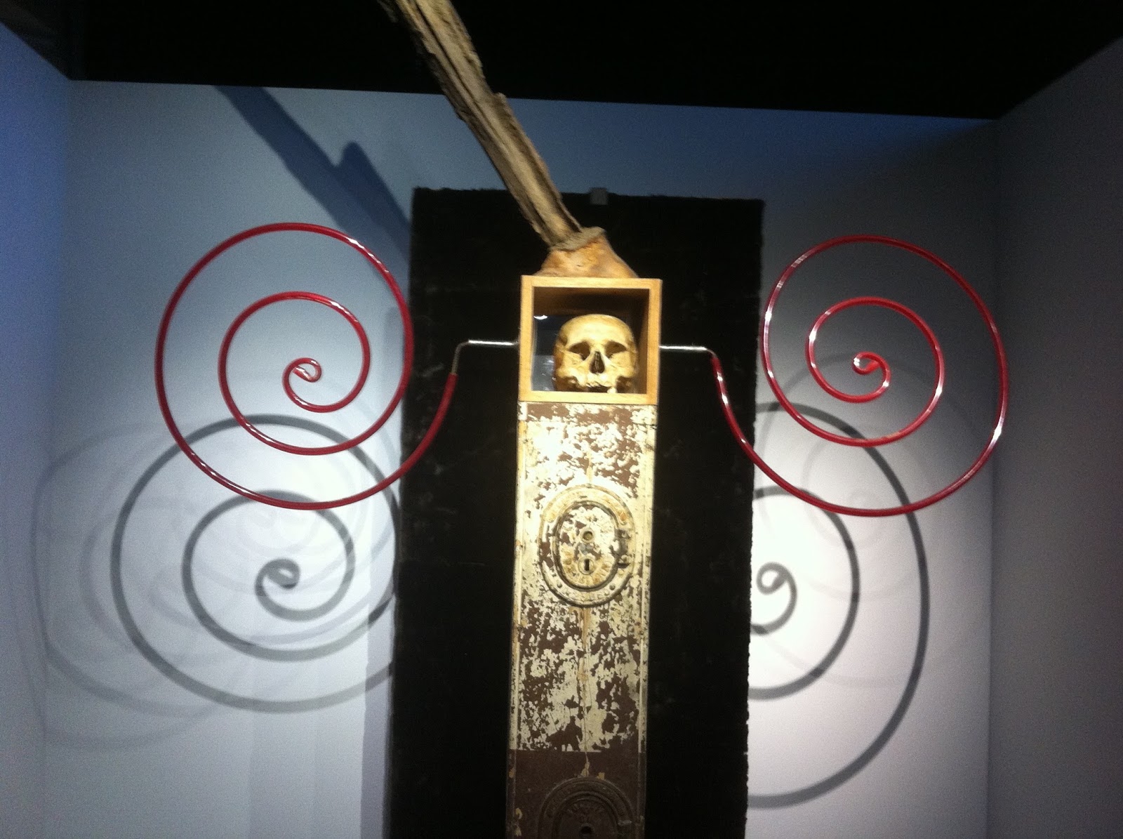 The exhibition tries to show how artworks are often methods of connecting us with powers and presences beyond our worldly sense. We see Jean-Jacques Lebel ‘Radio Momo’ intended to reach the dead. Lebel had chosen to add two aerials to a real scull, as an altar that is to talk to the dead Antonin Artaud, but brought alive by his own work of art. For Lebel, are is a form of ‘telepathy interposed by work’ (although Artaud never yet has spoken into the instrument)