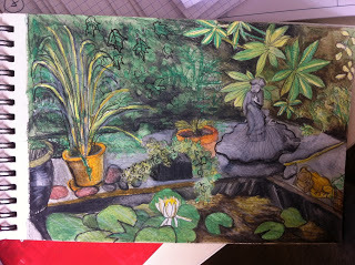 You must always finish a drawing. Never let self-criticism have a say. Keep going, right until you feel that you have told the whole picture and shown it all in its glory. The longer you look at it, the more likely the view before you will insist on being revealed, in all its glory. It will not want to be deprived of a vital garment: an elongated shadow or pretty ray of sunshine.