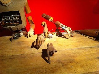 The range of strange objects, masks, models, awaken strangeness and thus dissolve those set knowledge’s, experiences and thoughts.