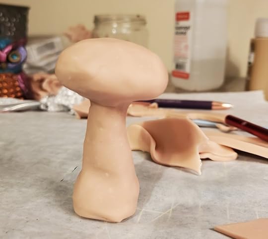 After wrapping the foil in polymer clay, I added more clay and created a mushroom shape.