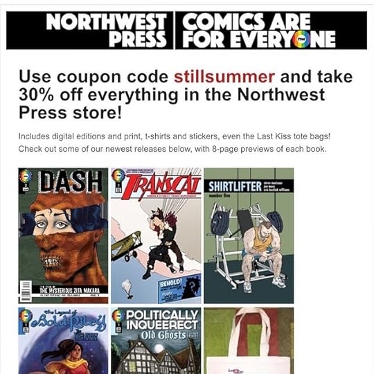 The e-book version of SHIRTLIFTER #5 is finally available, and is actually on sale over at Northwest Press. Take 30% off cover if you order in the next few weeks – use the code “stillsummer”. This code is for your ENTIRE order, not just SHIRTLIFTER #5; you can get all the books in the series, amazing work by Dylan Edwards, Eric Orner, Jon Macy, Howard Cruse, David Kelly, and tons of other great cartoonists (And don’t forget to look to the side door of the product page and sign up for their email -link is on the side of the screen).