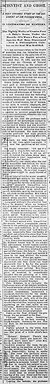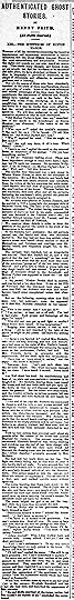 A different ghost report appeared a couple of days later in New Haven, Connecticut’s Morning Journal and Courier. Here, the ghost is said to haunt, not the station platform, but “the old water tank by the station on the Lake-Erie Railway at Flaherty’s Slinding.” It’s next spelled “Sliding,” but I assume they mean “siding.” Oh, but things get even worse. We read that Cole