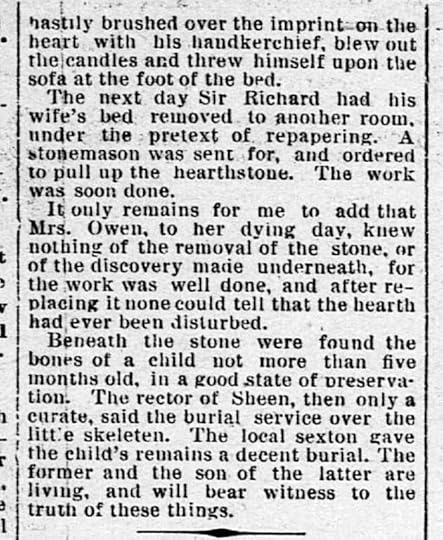 A Lack of Hard BonesI’ve found little to suggest this report is anything more than a tall tale concocted by “Alan Owen.” Granted, Richard Owen did live at Sheen Lodge. According to one bibliography, he “told excellent ghost stories” — though this is prefaced by saying he himself was without “the least superstition.” I have yet to find any evidence that the scientist ever told this particular story. And I fear my chances of contacting that unnamed rector or the unnamed son of the unnamed sexton are very, very slim.