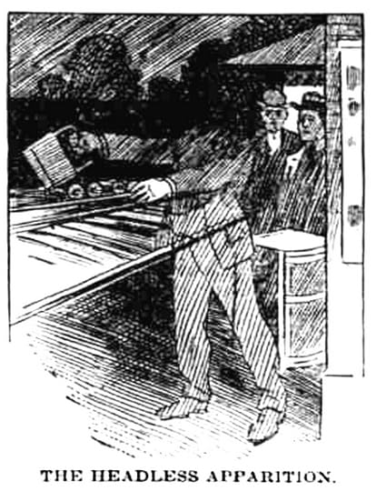 In August of 1905, a ghost identified as Columbus Cole was observed. Now, however, his head was completely missing, and the remainder of his form was said to haunt the platform of a train depot. The figure even gave signs of trying to signal a train. In other words, over time — and not much time — the case had become a railroad haunting.