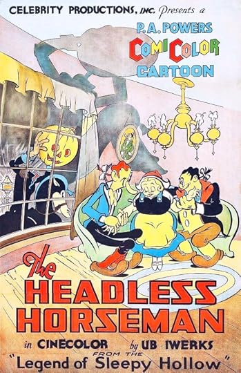 A 1934 Animated VersionIn the quotation above, we see that Washington Irving closes his famous tale with a fairly strong suggestion that Brom Bones had a hand in frightening Ichabod Crane out of Tarry Town, clearing a path to marry Katrina Van Tassel. In an earlier post, I discuss a 1922 film in which Will Rogers plays Ichabod, and here Irving’s suggestion becomes solid fact when Brom removes the Headless Horseman costume and guffaws as his rival hightails it into the distance. A 1934 cartoon version of the story does the same, erasing any ambiguity found in Irving’s finale. (But the cartoon also adds a brand new surprise at the end, too!)