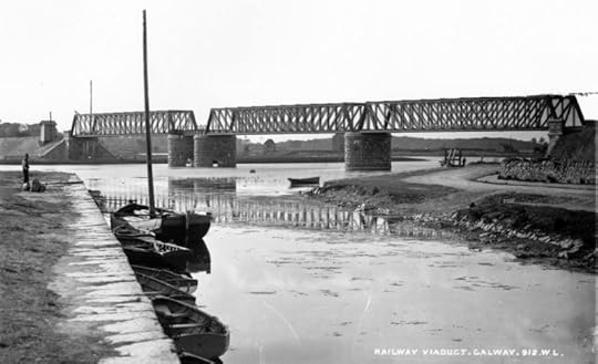 The Galway & Clifden viaductDoes that viaduct still exist? Well, while the tracks across it were removed with those on the land before and beyond, the stone pilings upon which they once rested remain, and they can be visited. Photos and a map are provided here. The best landmark is the the Salmon Weir a bit to the south. The Angling Ireland site says the cost of fishing in this stretch of river depends on where you cast your line. I’m not sure if there are any fees for ghost hunting. All I can say is: be courteous, and be smart.