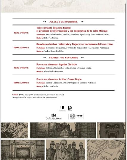 Roberto Coria está con Bibiana Camacho y 21 personas más.nSoeotprdsrl8i261 09f0lad0343 ifmh t9c1ul 9 gfm1mos8 gu2bef9.t:31e8v4.0g 138a0ean ·El próximo miércoles comenzará el Coloquio Auguste Dupin de Literatura y Ciencias Forenses, presentado por la Cátedra Extraordinaria José Emilio Pacheco de Fomento a la Lectura y Universo de Letras UNAM, con el apoyo de la Escuela Nacional de Ciencias Forenses UNAM. Es un proyecto inédito que busca tender un puente entre estos dos mundos aparentemente distantes. Los esperamos el 5, 6 y 7 de noviembre en la sala Carlos Chávez del Centro Cultural Universitario. Pueden conocer a los participantes, ver el programa completo y registrarse (aún hay lugares) en https://shorturl.at/frE5l