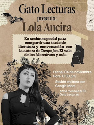 https://tinyurl.com/joveneslectores Presentación de sus libros:"Despojos", "Tristes sombras", T"usitala de óbitos" y "El vals de los monstruos".