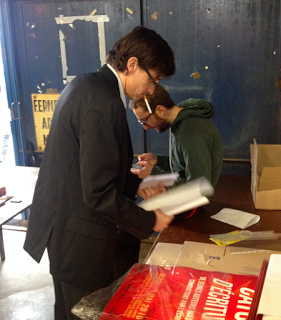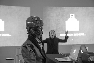 Que Benjamin Reverdy - de l'association Mille Feuilles - soit ici remerci��, car c'est lui qui a eu l'id��e de rapatrier cette chouette animation �� Nantes, o�� on avait certes d��j�� vu des matchs de dessinateurs �� moustaches, mais encore jamais d'��crivains cagoul��s.