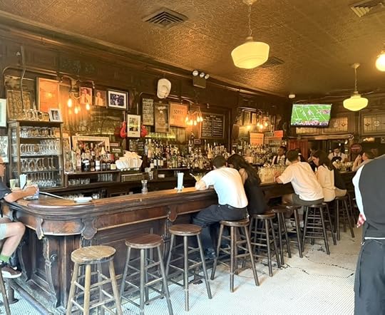 But the glass on the facade has a magic to it. Illuminated by the late afternoon sky and the soft amber globes decorating the windows, it gives off a feeling of secrecy and privacy—luring thirsty New Yorkers into the warm embrace of a late 19th century workingman’s tavern.