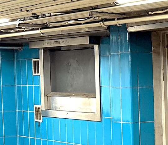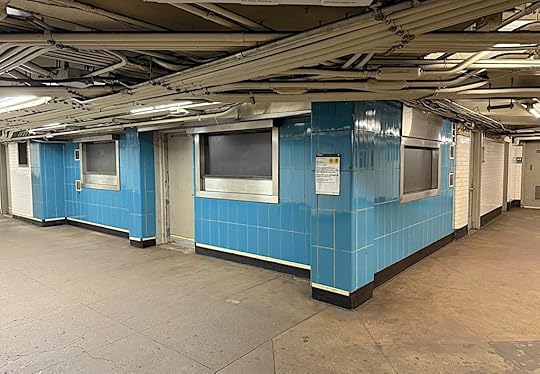 The three shuttered metal windows look vaguely institutional, and like the rest of this part of the station, the corner storefront is unattractive and neglected amid excess platform grime.