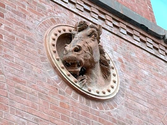 The Speedway Stables were also a product of the 1890s. Like many carriage houses, the facade featured sculptures of horse heads. These two powerful equines look like they were sculpted mid-trot, with their flared nostrils and wild eyes.