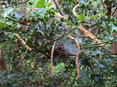 … what looks like, for the briefestof moments, thousands of hairy caterpillars draped over brambles, holly bushes,ferns, before they quickly reveal themselves to be the long yellow catkins froma mature sweet chestnut tree.