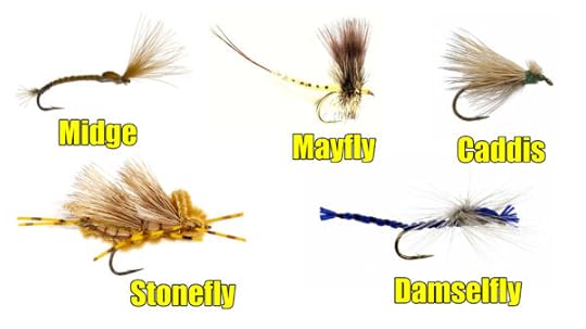 Dry flies are designed to float on the surface of the water and generally are tied to imitate either emerging or adult insects such as midges, mayflies, caddisflies, stoneflies, damselflies, and even large insects such as grasshoppers. Poppers, which can imitate big bugs, frogs, and other larger critters can fit in this category as well, as they are indeed designed to float and be fished on the surface.