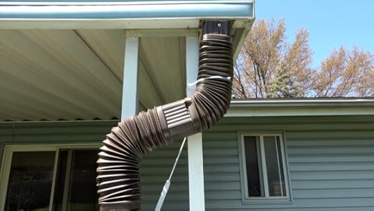 The next step was to rig up the flow of water to each barrel, so I cut the downspouts off a few feet above each drum and attached some flexible downspout sections with some zip ties and sheet metal screws, all of which cost me about $25.00 total. Another important step was to make sure that big leaves and debris didn’t get into my drums and clog up the spigot, so I devised a simple filter system by cutting sections of gutter screen to fit inside the holes on the top of the drums where the water goes. And that’s basically it for the whole system. It cost me a grand total of around $95.00 and took me no more than an hour or so to set up.