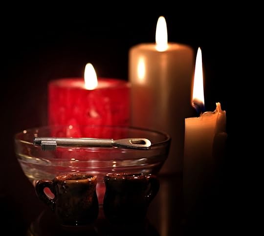 Take your candle and place it in the bowl of earth and then place that in the centre of your mirror (which is facing up) and say over it: