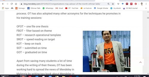 Saya juga telah dibawa ke Seoul utk bertemu Vice President Mendeley lalu mewakili Mendeley dalam satu demonstrasi di sana pada 2015. Kisah saya muncul di BLOG MENDELEY pada tahun yang sama spt video berikut.