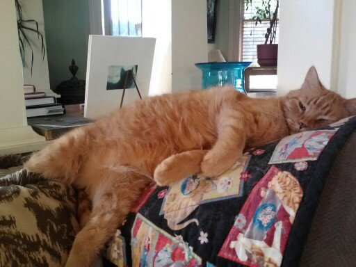 The way Big Red sprawled his substantial 17 pounds of cat on the back of the couch.