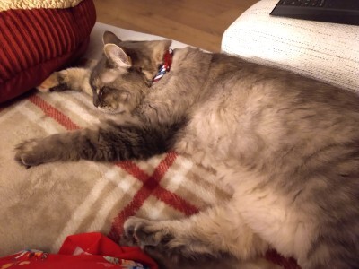 My little soul cat Jaimz liked to sleep with his arms outstretched.