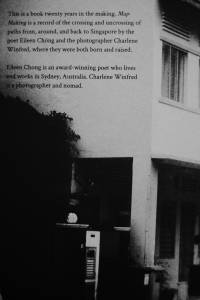 Map-Making is a 100-page book of photographs and poems about Singapore, a collaborative effort between the photographer Charlene Winfred and myself. It is published by the micropress I founded in 2016, Potts Point Press, and is issued in a limited edition of 100 signed and numbered hardcover books.