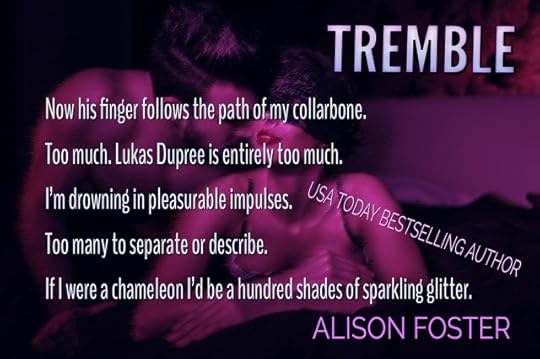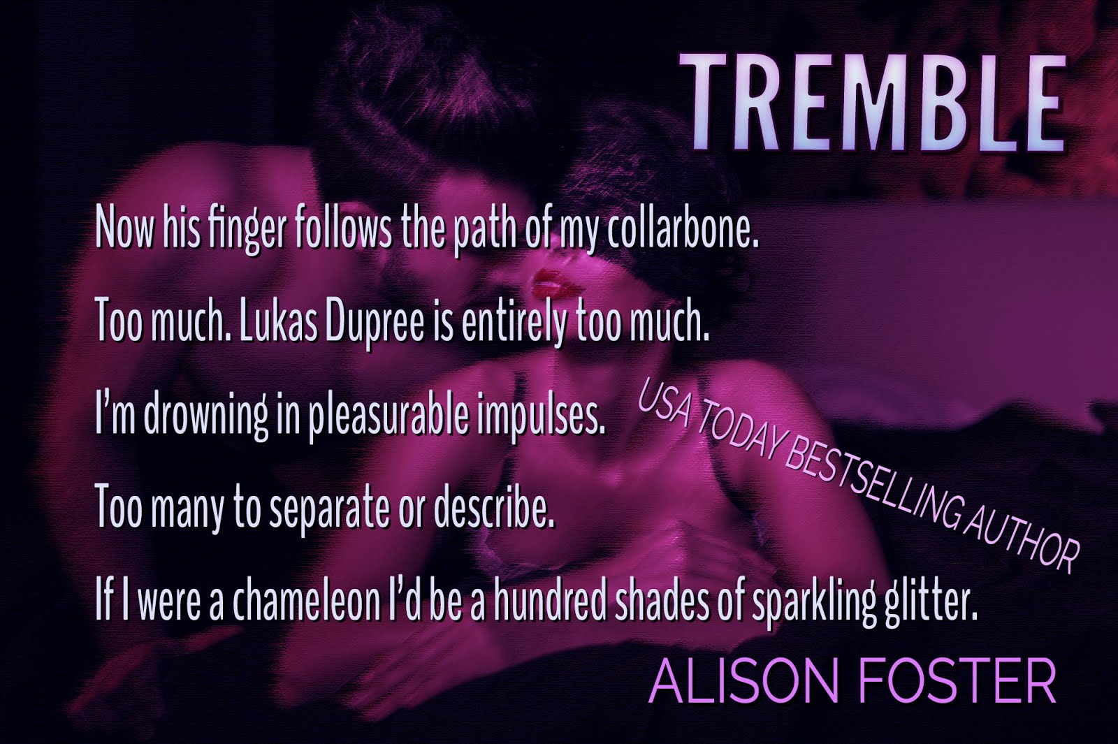 Title : TREMBLEAuthor : Alison FosterRelease Day : November 15thGenre : Contemporary Romance, Romantic SuspenseAdd to Goodreads: https://www.goodreads.com/book/show/30056464-tremble BOOK DESCRIPTION Not everything sounds good when you say it. Some things sound, well, just wrong. Like saying I hired a male escort to be my fiancé leading into (yeah, this is sounding bad) marriage, a fake marriage, one about money.See, that did not sound good at all, but you’ll have to just trust me on this, that was the innocent part of the story. You know, the sunny bit before the fall. Because the rest of this story cannot be described in polite company. Not even a little.