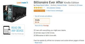 The first boxed set is called Billionaires ever after and with 22 authors penning some great stories – from sweet to ‘oh my!’ – It’s a steal at 99 cents.