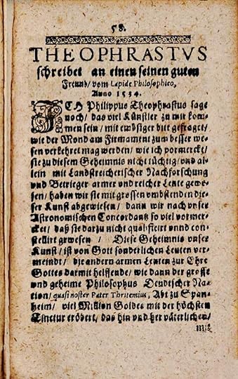 [19]        […] von Kindheit auf hab ich die ding getrieben,und von guten unterrichtern gelernet, die in der adepta philosophia die ergründesten warent und den künsten mechtig nach gründeten. erstlich Wilhelmus von Hohenheim, meinen vatter, der mich nie verlassen hat, demnach und mit sampt im ein große zal, die nit wol zu nennen ist, mit sampt vilerlei geschriften der alten und der neuen von etlichen herkomen, die sich groß gemühet habent, als bischof Scheit von Settgach, bischof Erhart und sein vorfaren von Lavanttal, bischof Nicolaus von Yppon, bischof Mattheus Schacht suffraganus Phreisingen und vil ept, als von Spanheim und dergleichen mer, und vil under den anderen doctor und dergleichen. auch so ist ein grosse erfarnus beschehen und ein lange zeit her durch viel alchimisten die in solchen kuensten gesucht haben, als nemlich der edel und fest Sigmund Füger von Schwaz mit sampt einer anzal seiner gehaltnen laboranten. darumb sol sich niemants verwundern, das ietzt solche correcture vor augen ist […]. Wo nun die erfarnus ist und das herkomen und der grunt der vier philosophorum mit sampt der künst vulcani und der phisici, ob nit bilich sei soliches zu corrigieren und das falsch, das irrig vom guten scheiden, darbei auch weiter zu suchen und die ding zu besseren, zu enderen wol gebürlich ist. — Sudhoff, Vol. X, 1928, p.354-355
