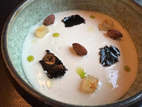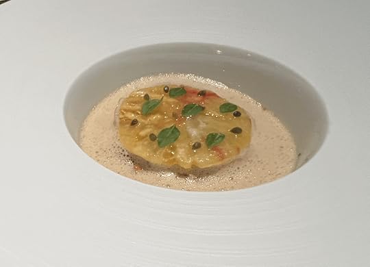 The first of the main courses was Seal Mojama in ajobianco with fermented tomato water, almond and parsley oil.